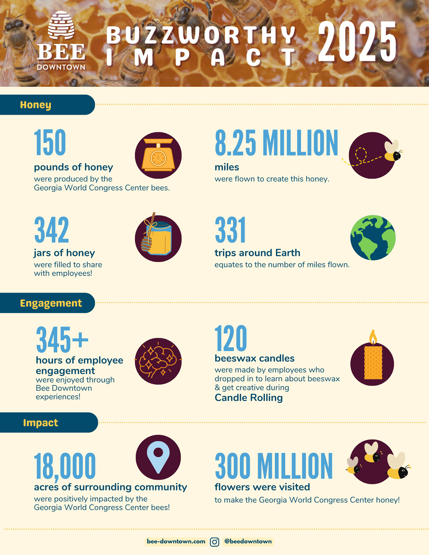 Georgia World Congress Center proudly supports urban pollinators through three on-site beehives installed on our campus in partnership with Bee Downtown.
